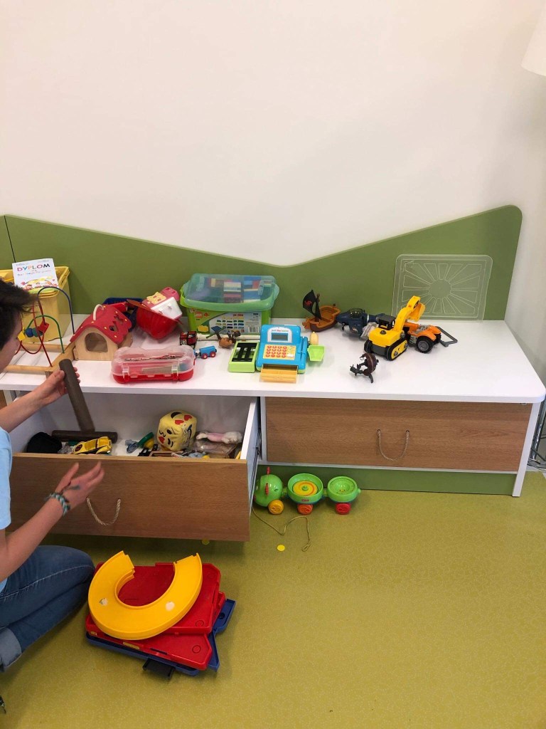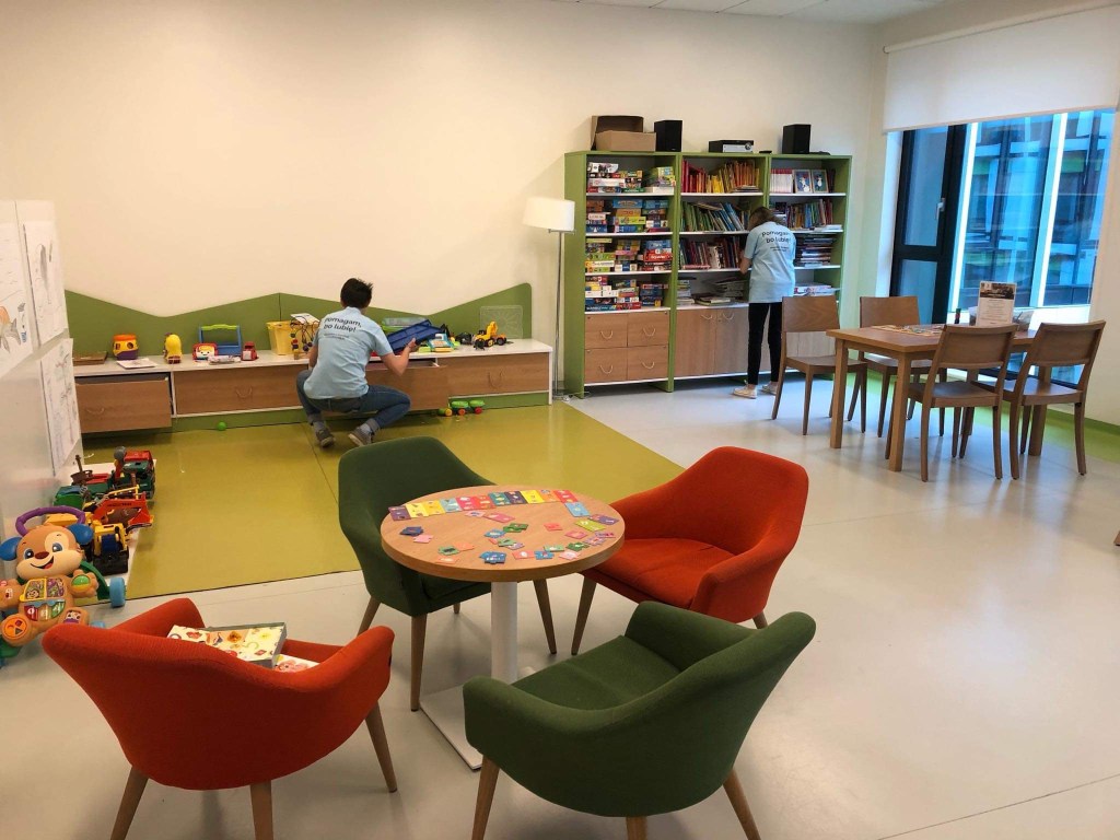 This time we got the job to clean one of the hospital’s play rooms. We had to put the toys that were lying all over the room to some cupboards and drawers and arrange the books on the shelves. Generally our task was to make the room look neat. It is really great that the foundation takes cafe of the fact that the playrooms are made up regularly, so it is later pleasant for kids and their parents to spend time there. Some toys are too big to be hidden in the drawers, so you have to take them out. They are more noticeable for children that way, so it is then very rewarding to see how they willingly play with those toys.