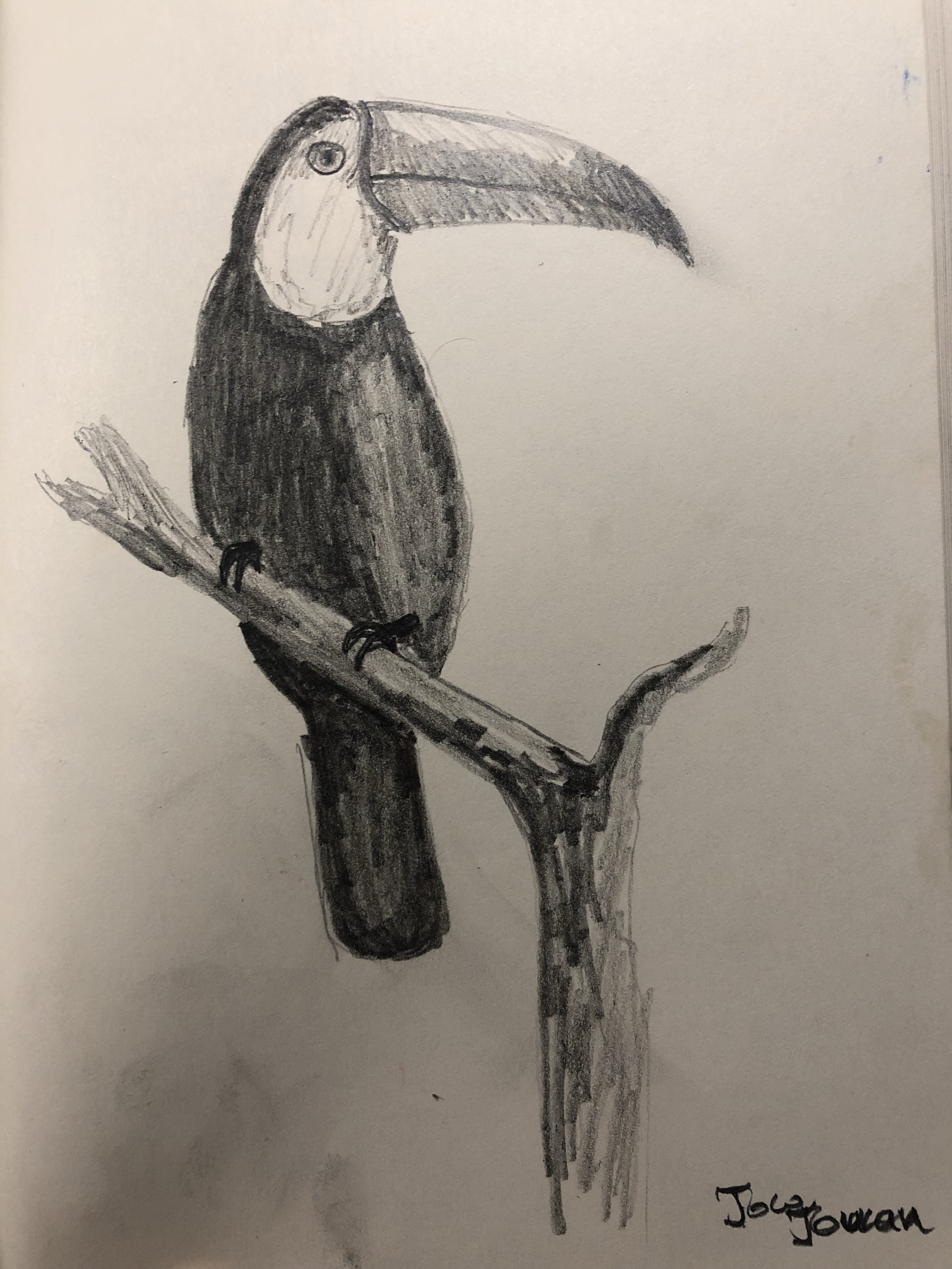 As I have mentioned in the previous creativity post, I am now starting to explore deeper drawing birds. My first work depicts toco toucan. I have sketched it using a simple pencil. The topic about birds seems really interesting to me, because those creatures come in some many variations and are always so majestic. Undoubtedly, the tropical birds are especially colourful and vibrant. What more, birds are associated with freedom, due to their ability to fly, at least most of them. Being very light, they impersonate the free spirit, flying whenever it wants. This is why I am fascinated with them and therefore eager to draw different species in the upcoming weeks.