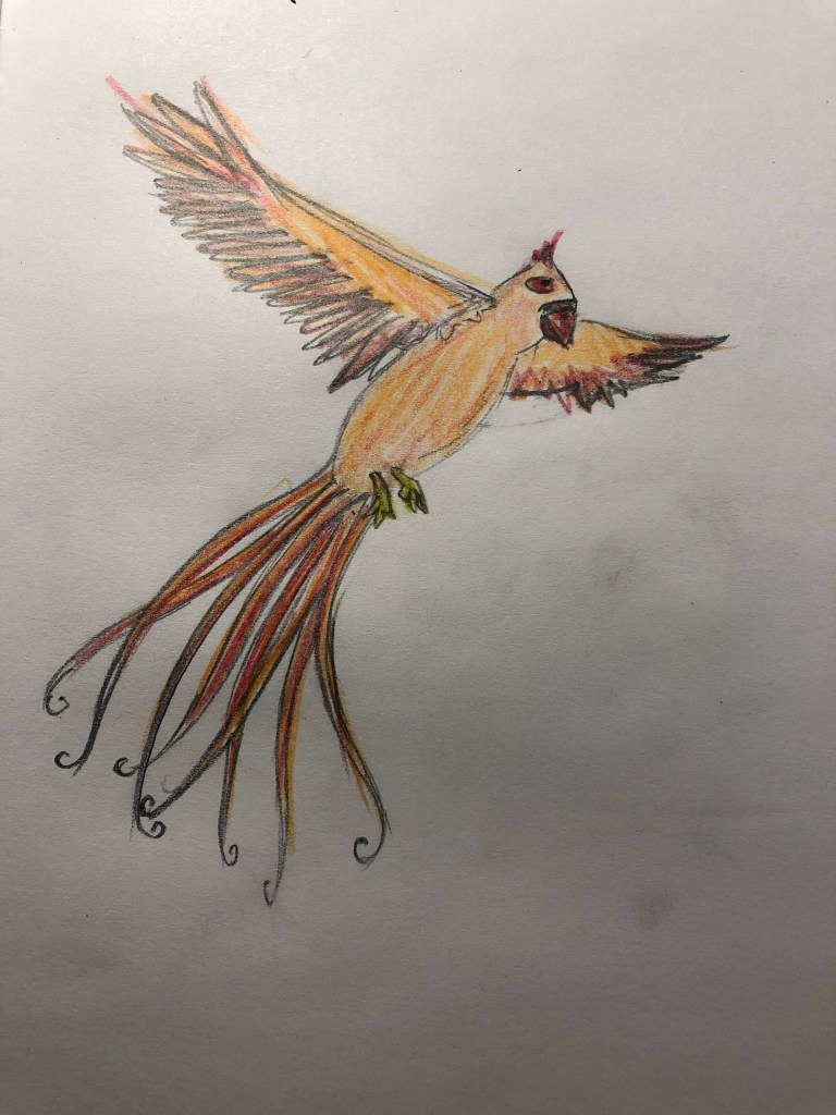 With the beginning of new year I have also started a new sketchbook. I have decided that my first drawing will be a phoenix. I got inspired by an illustration in some of my comic books. I thought that a phoenix might be a good start of a new notebook, as it symbolises rebirth and something new, fresh. Because the sketchbook is new and not yet occupied, contrary to my last year’s one, it can be considered a reborn phoenix. To create the drawing I used a pencil. Then I used crayons to complete it and give it some colour. I hope that this is going to be a nice beginning for the sketchbook and I will create some interesting designs during the year.