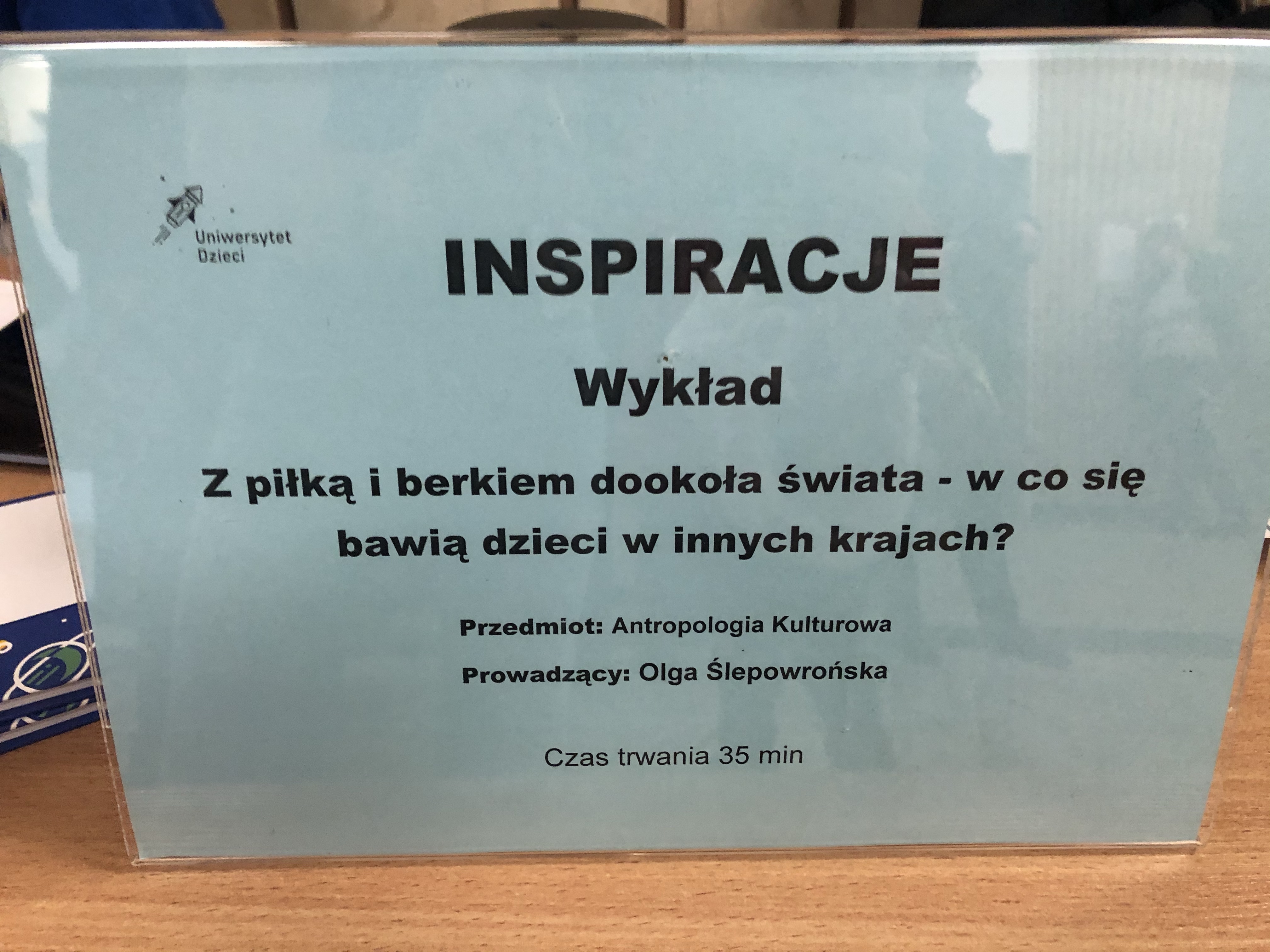 The topic of this time’s lecture concerned different types of games that appear around the world. Kids were there to learn how their peers in other countries play. They have also discussed why children need to play and agreed that the basic reason for this does not differ across the world. Playing is simply a form of development in all areas of life. Kids were also shown toys from different countries and compared them to what we have in Poland or in Europe generally. I was there to assist during the lecture and provide help if needed. Apart from that I have also checked the lists with other volunteers and we arranged our stand.